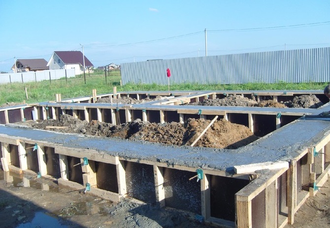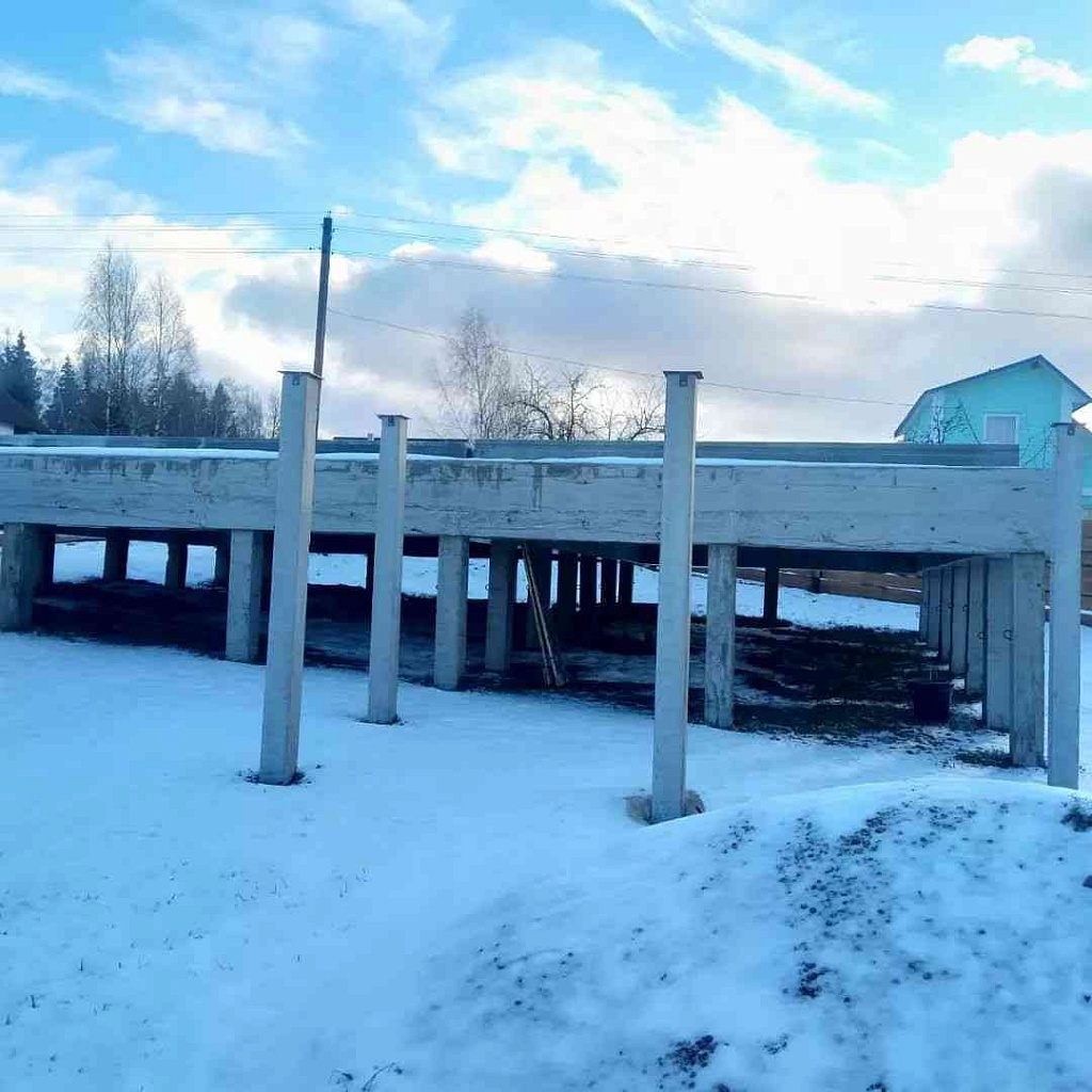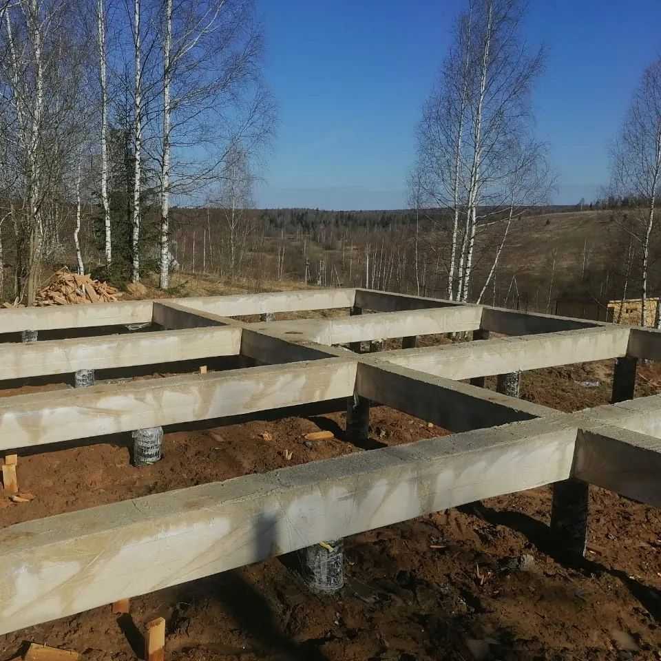 Ленточный фундамент на бетонных сваях